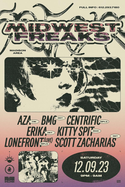 Midwest Freaks Sat, Dec 9 2023, 9pm - Sun, Dec 10 2023, 9am Promoter Intellephunk, Remain in Night, Interdimensional Transmissions Genre(s) Techno