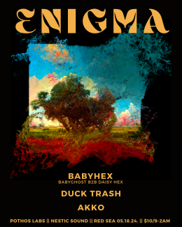 ENIGMA - BABYHEX (Babyghost b2b Daisy Hex) || Duck Trash || AKKO Sat, May 18 - Sun, May 19 2024 The Red Sea Ethiopian Restaurant
