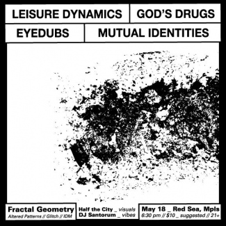 Eyedubs Shows Five Years of Æther Sound Wed, Dec 21 - Thu, Dec 22 2022 Icehouse Fractal Geometry _ May Edition Wed, May 18 2022 The Red Sea Ethiopian Restaurant ALL SHOWS