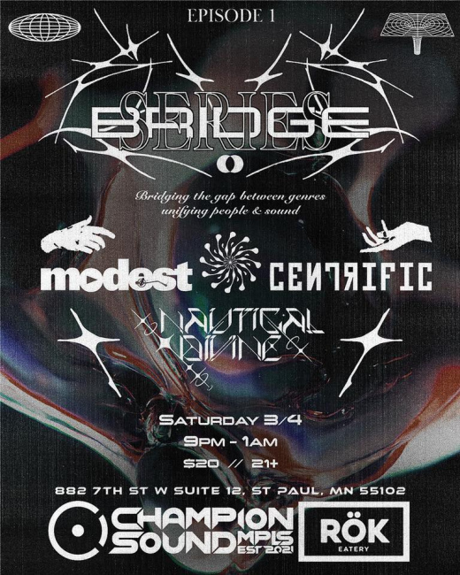 BRIDGE SERIES: Episode 1 Sat, Mar 4 2023, 9pm - Sun, Mar 5 2023, 1am Promoter Nautical Divine Venue ROK Eatery + Bar Genre(s) Techno Drum & Bass Dubstep