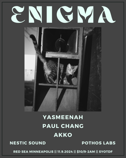 Enigma is a dance party that showcases the sounds and styles of forward thinking DJs, visual artists and the Twin Cities best sound engineers. Expect pumping rhythms, high quality sound and generative art curated by Eunoia Studios, Pothos Labs, Nestic Sound and Origin 414.
